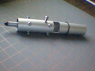 There are eight screws which hold the laser pointer centered in the tube. The eight screws are installed in Rivnuts. Rivnuts, also called Nutserts, and other brand names which I don't know, are a combination of a pop rivet and a nut. You drill a hole the size of the Rivnut, insert the Rivnut in the hole, and expand the Rivnut with a special tool. Its a great way to put threads in thin material. Harbor Freight and Tools has a kit including the tool and Rivnuts for about $15.00. The ninth screw is located over the laser pointers power switch. I just tighten this screw to turn on the collimator, and loosen it to turn it off.